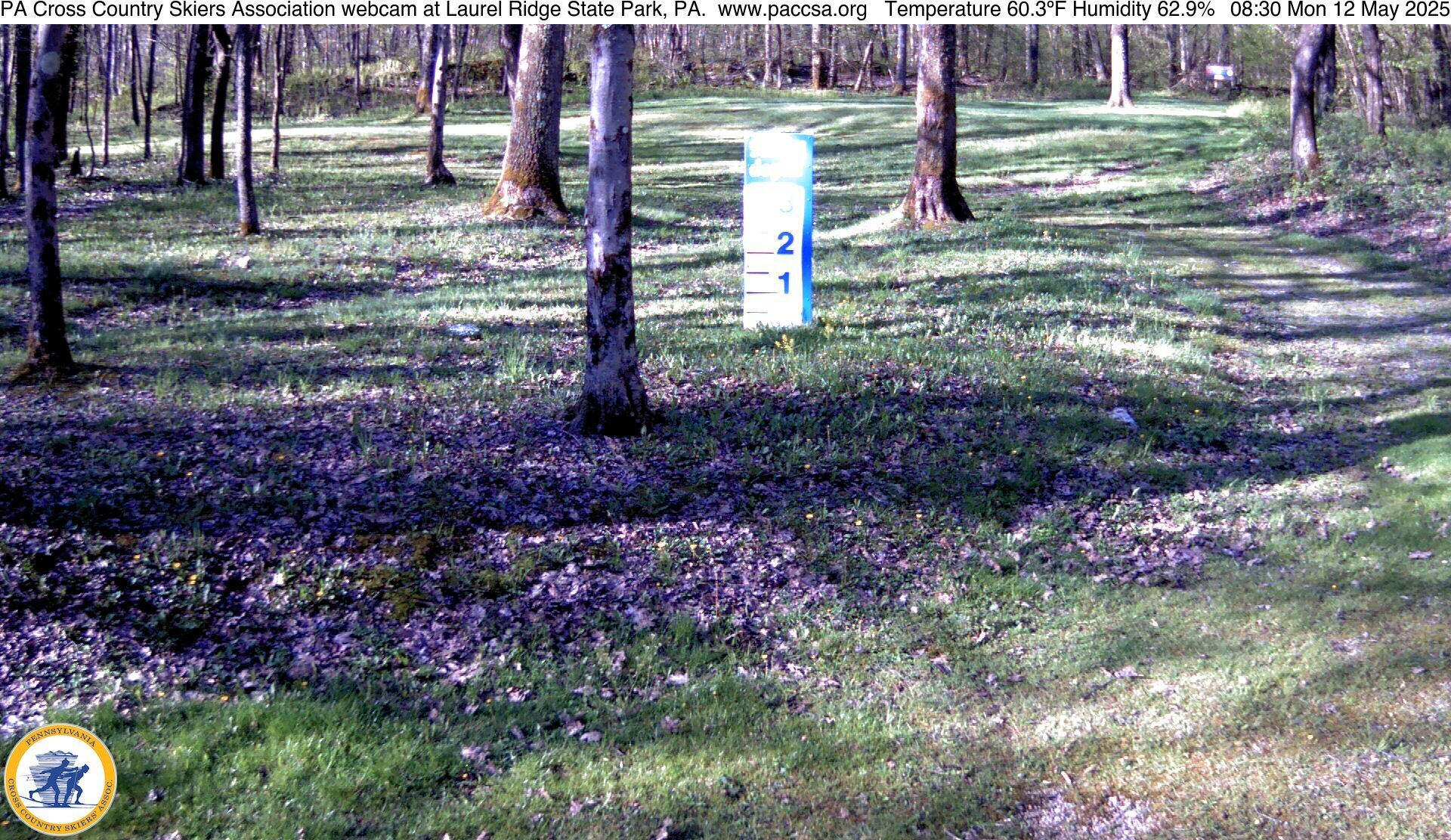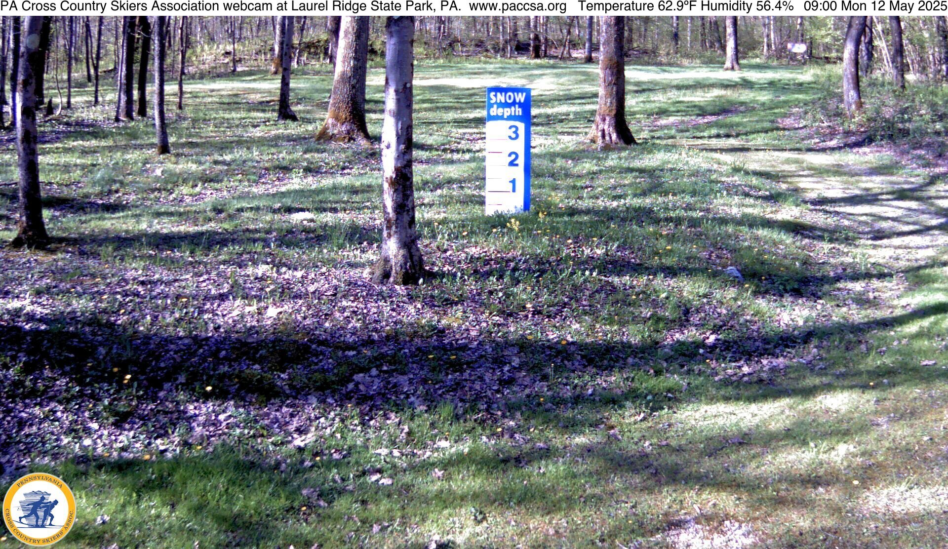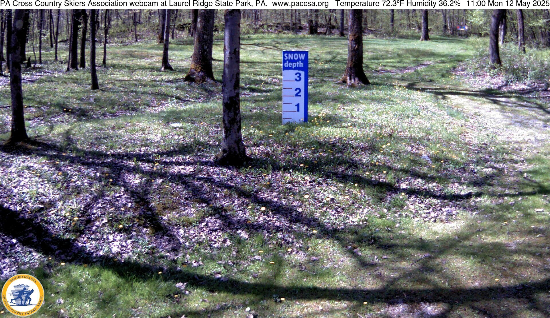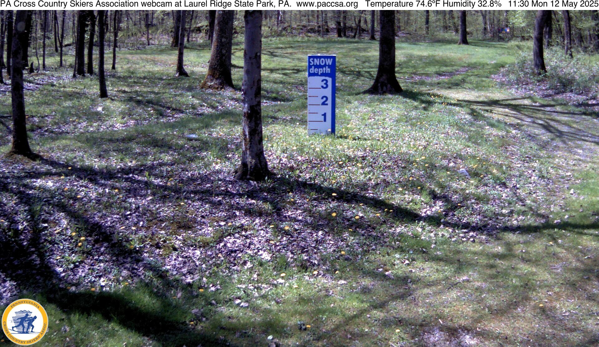 The webcam at Laurel Ridge State Park cross country ski area is owned and maintained by PACCSA, with the support of DCNR and donations from the public.  Thank you to everyone who has contributed.  The webcam operates from fall to spring, taking a photo of the ski area every half hour from sunrise to sunset.  The ground elevation where it is sited is 852 m, 2795 ft.