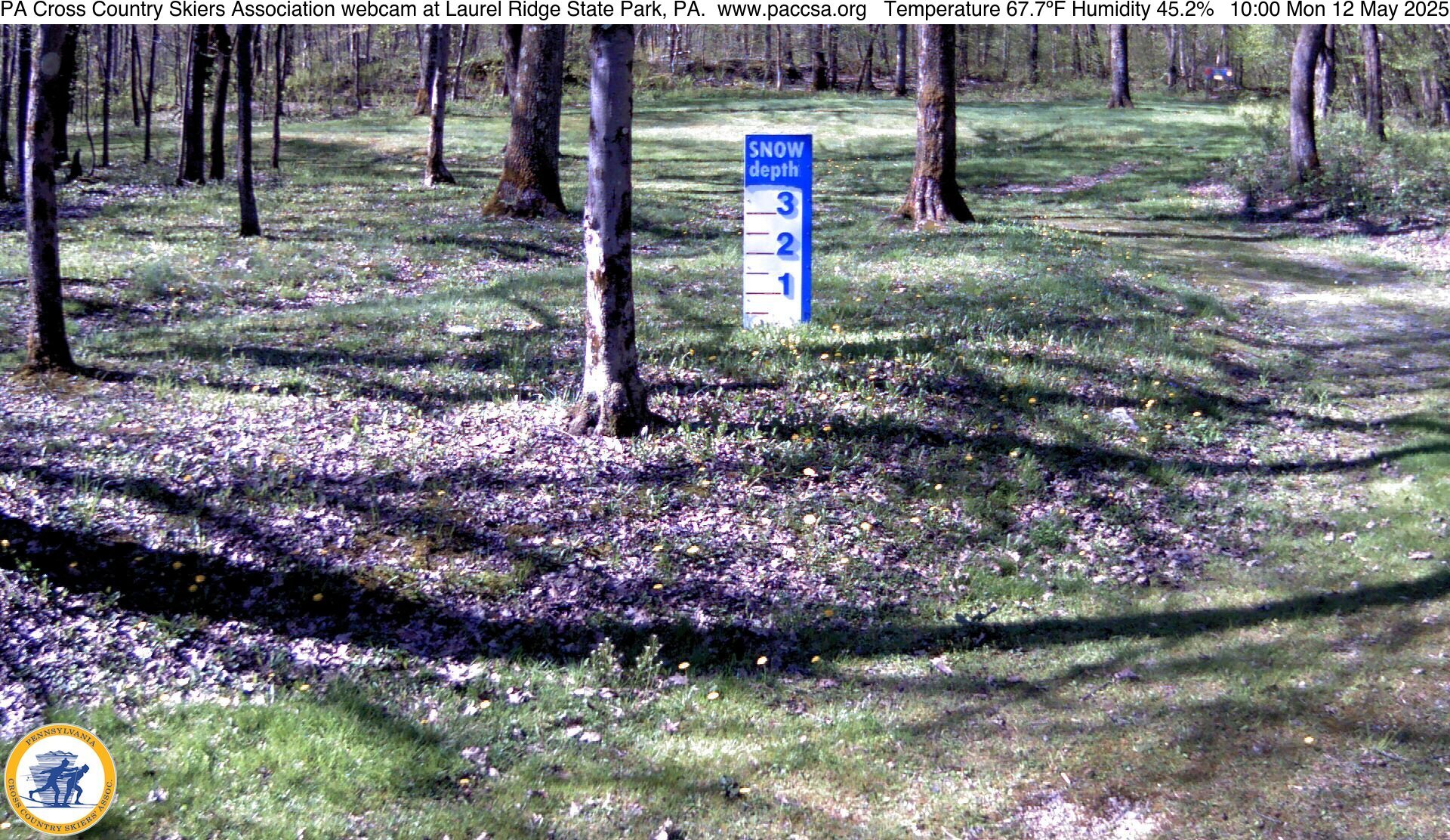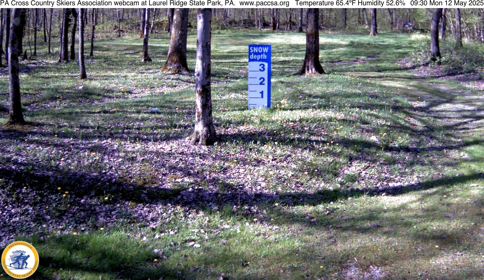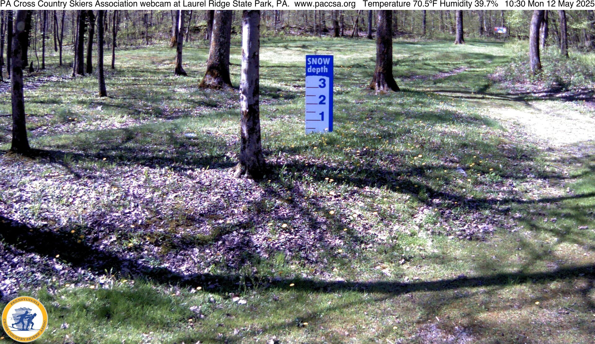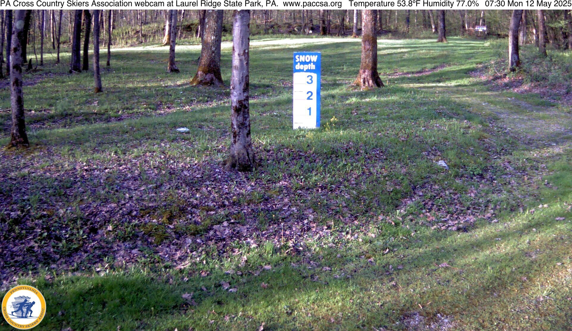 The webcam at Laurel Ridge State Park cross country ski area is owned and maintained by PACCSA, with the support of DCNR and donations from the public.  Thank you to everyone who has contributed.  The webcam operates from fall to spring, taking a photo of the ski area every half hour from sunrise to sunset.  The ground elevation where it is sited is 852 m, 2795 ft.