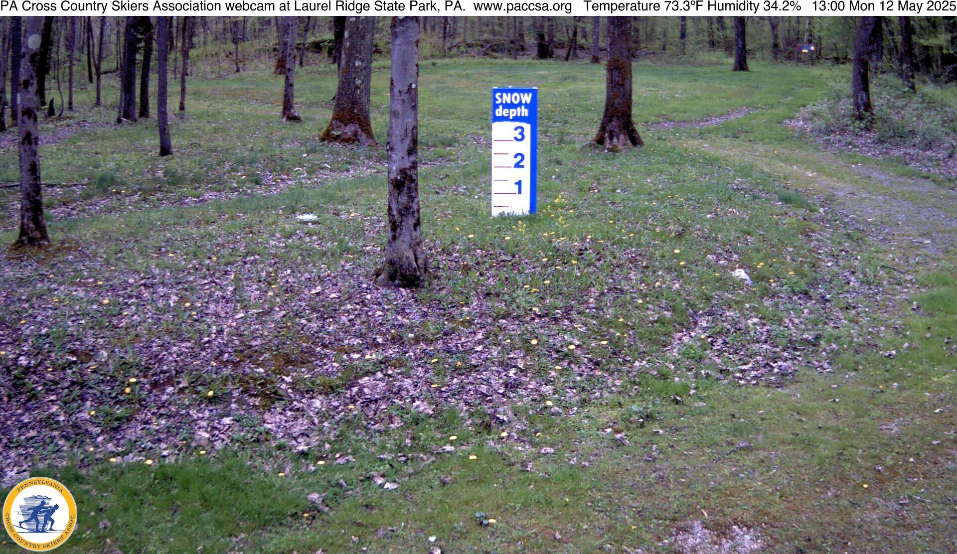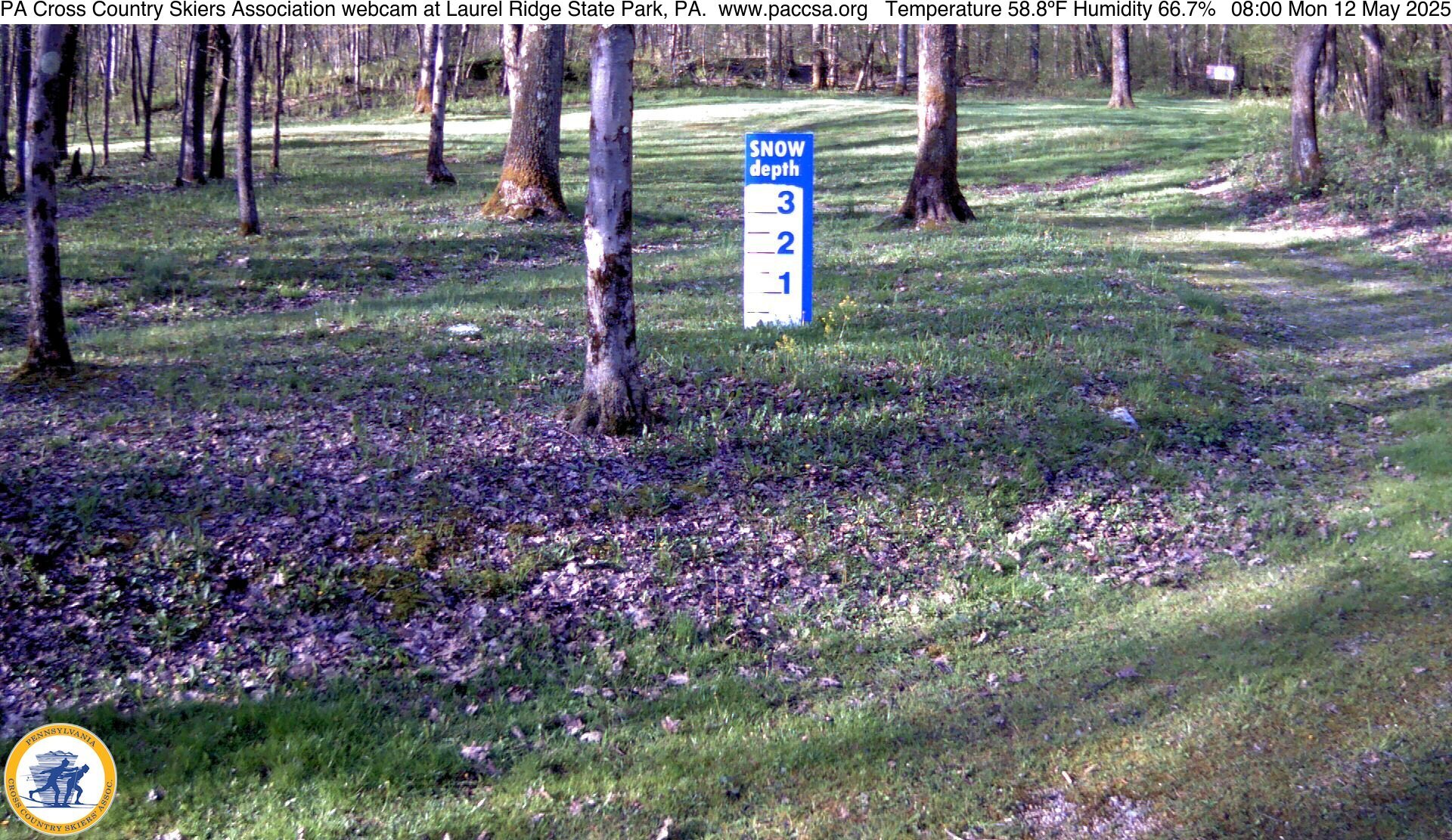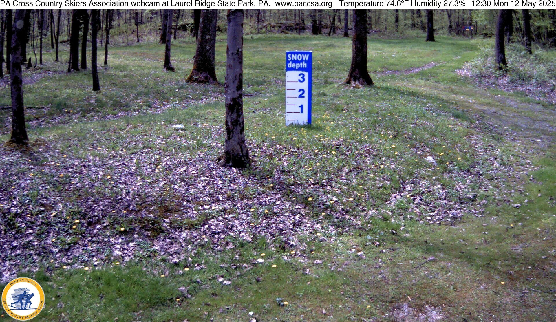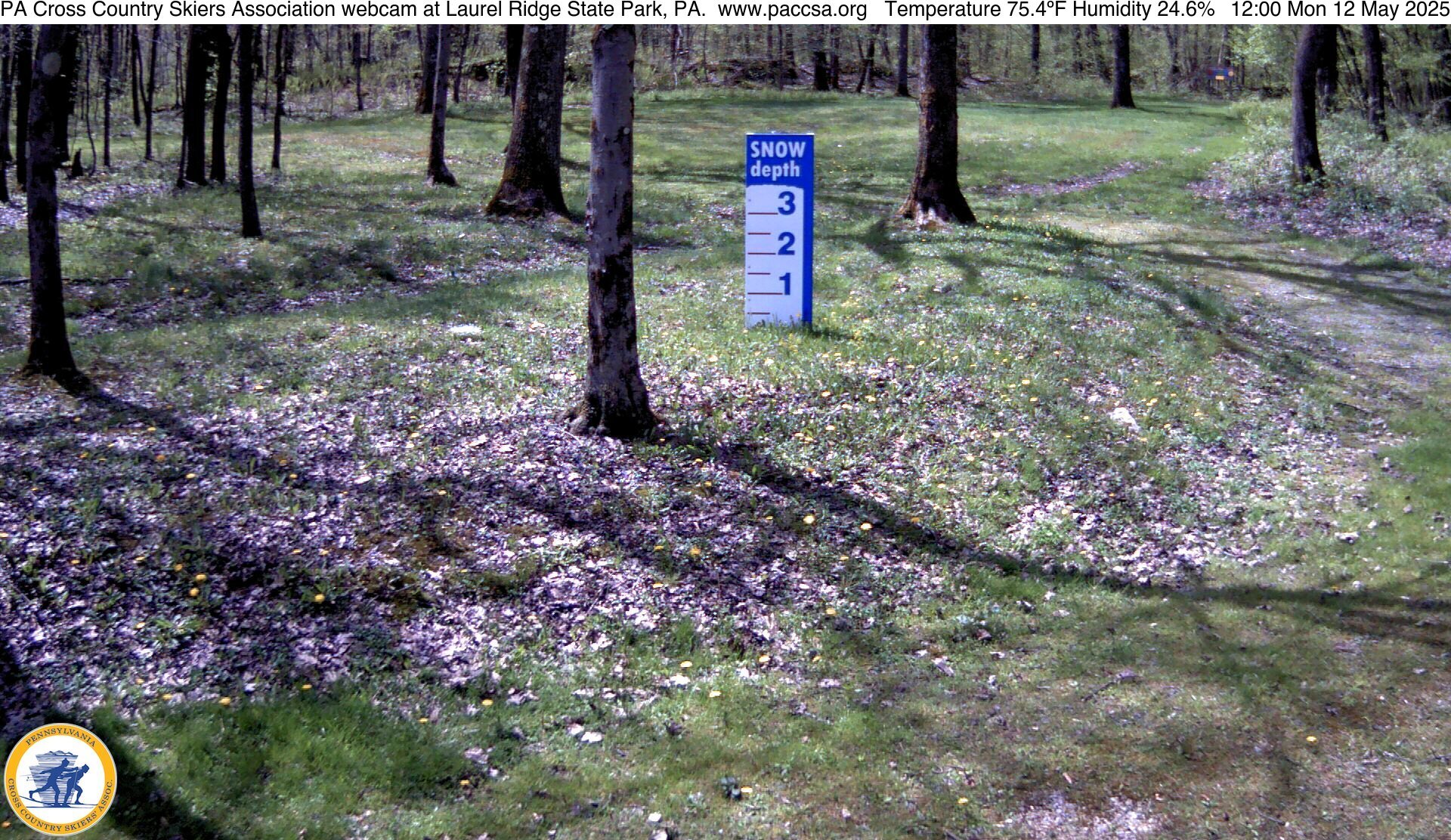 The webcam at Laurel Ridge State Park cross country ski area is owned and maintained by PACCSA, with the support of DCNR and donations from the public.  Thank you to everyone who has contributed.  The webcam operates from fall to spring, taking a photo of the ski area every half hour from sunrise to sunset.  The ground elevation where it is sited is 852 m, 2795 ft.