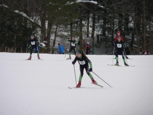 The day started off with the classic races, which included 5k and 10k events. In the Adult 5k Classic race, Wilderness “Wildcat” coach Melanie Nickou had the best overall time (for both women and men) with a 26:54 effort. She was followed by Devon O’Hern (32:24) and Kathy Schreckengost (35:46). The Men’s 5k classic win was claimed by Daniel Kowalik (27:51), who was followed VERY closely by Harry Wright (28:01) and Phillip Rewer (28:02). The Youth 5k Classic Boy’s title was taken by 15 year old Simon Zehr, whose time of 25:33 was faster than any of the adult competitors. Simon was followed by Colton Martin (25:55) and Rylan Hodgson (27:05). In the Girl’s 5k classic, victory was claimed by Rochester Nordic’s Grace Mattern (28:05), with Leah Shaffer (28:35) and Gwen Wright (33:18) close behind.