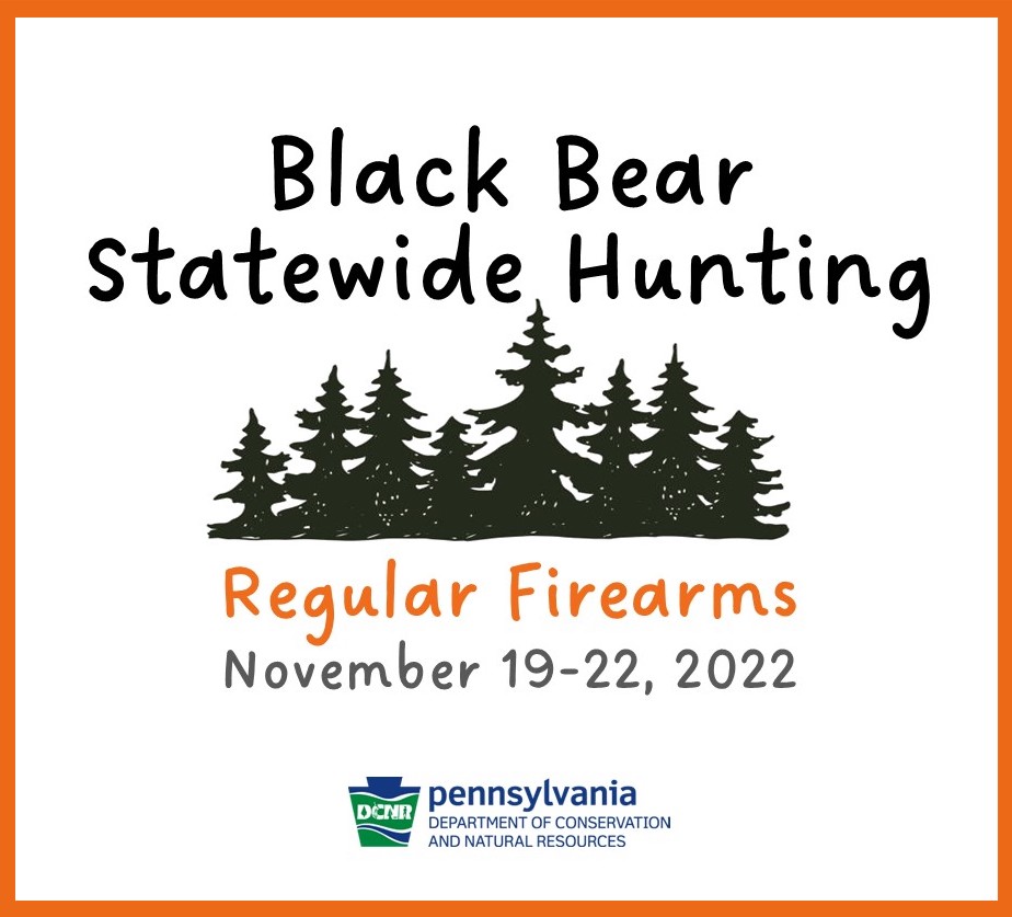 Thanks to Forbes State Forest for this reminder: statewide black bear, regular firearms season begins this Saturday, November 19 thru Tuesday, November 22. Stay safe, be seen, wear blaze orange, and be courteous to others.