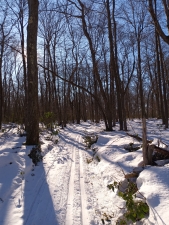 The skiing is pretty good on the parts of trail that are not affected by the washouts. The surface is a little powder over a thick crust over denser stuff. If you would like to join in some fun group activity tomorrow (Feb 2), meet at the warming hut in time to start skiing at 9:30am. Pay attention to where you walk on Summit Rd, as it is icy beneath the snow. We will be selling Kind-a-hard (to-plan-a-race-these-days) t-shirts and go for a group ski; if there are enough of us we might do something like a short relay on part of interstate, just for fun. Please let us know if you might join.