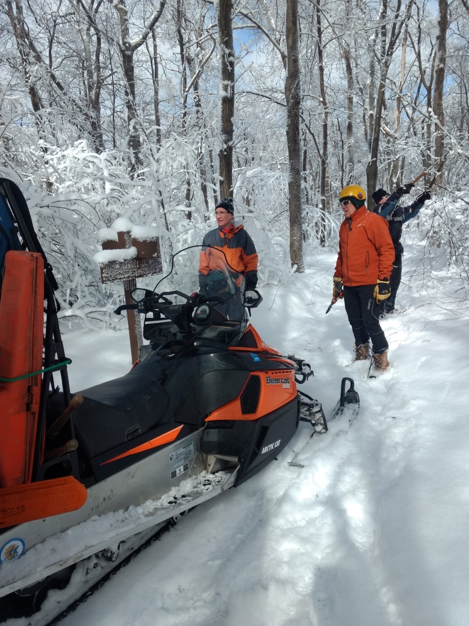 Thanks to those who were out clearing fallen branches from the ski trails. The first two photos were taken on Wednesday, one at Laurel Ridge and one at Laurel Mountain, and the third was taken at Laurel Mountain early Thursday morning.